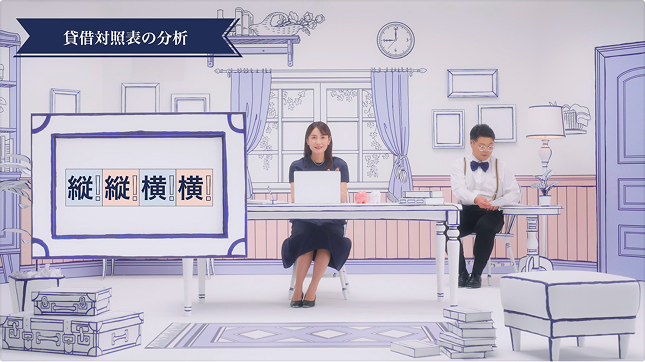 見慣れない漢字と数字の羅列の決算書を豚の貯金箱や風船のイメージに変換し、縦縦横横といった覚えやすいフレーズを用いて、ストーリー仕立てで解説。